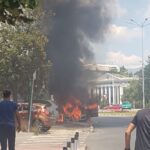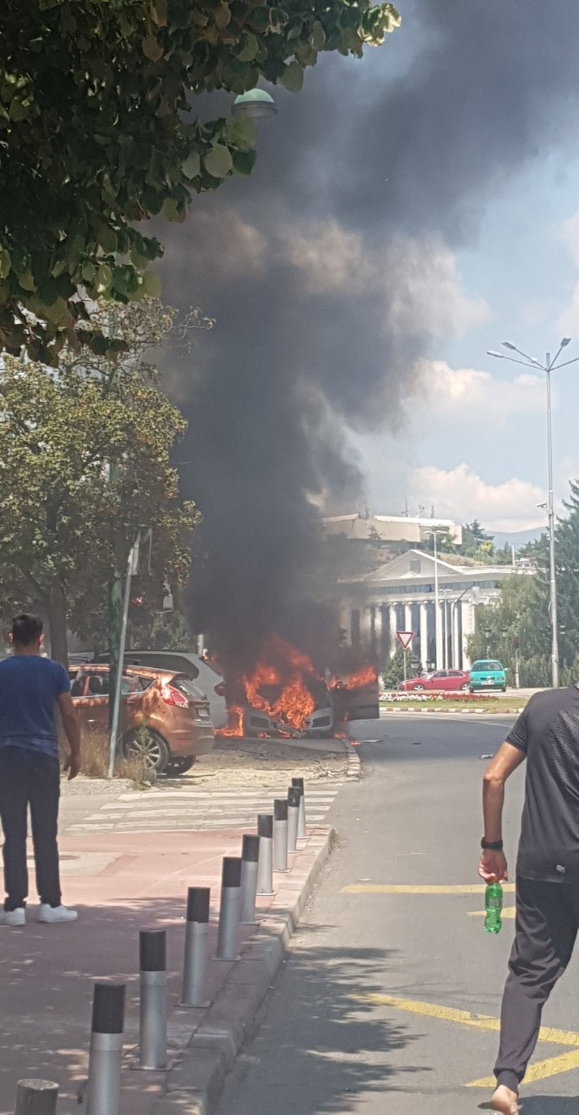 Во моментов во строгиот центар на Скопје се запали автомобил, чии што причини сеуште не се познати.