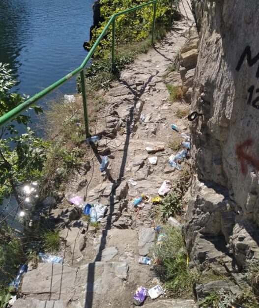 Посетителите биле шокирани од тоа што го забележале на патеката која од Планиарскиот дом води кон внатрешниот дел од кањонот. Пластични шишиња, кеси, стапчиња… сето тоа било натрупано на тесната патека и фрлено од страна на посетителите. Најголемиот дел од овие отпадоци завршил во езерото кое со тоа дополнително се загадува.