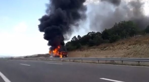 Патнички автобус целосно изгоре денеска на автопатот Скопје – Свети Николе кај селото Алакинци. Во пожарот нема повредени лица.
