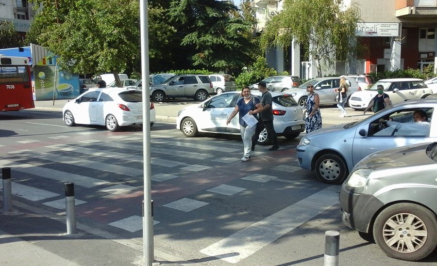 Да поминеш на пешачки во Скопје не е лесна работа. На некои места дури е и ризик. На пример на пешачките премини кај трговскиот центар „Рамстор“ кај старата железничка станица.