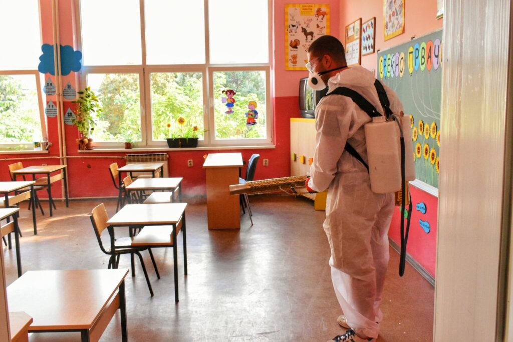 Со цел зголемување на безбедноста и почитување на превентивните мерки, овластена компанија, изврши темелна дезинфекција во внатрешноста и на надворешните делови на училиштата. Со дезинфекција се опфатени сите влезови и излези во училиштето, подовите, ходниците, скалите, тоалетите, просториите за вработените, помошните простории, како и сите работни површини каде што учениците ќе имаат контакт при следење на наставата за време на училишниот престој.