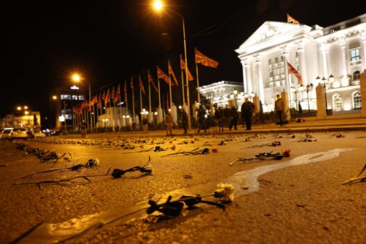 Опозициската ВМРО-ДПМНЕ остави 1.071 каранфил на улицата пред Владата во знак на почит за починатите од коронавирус.