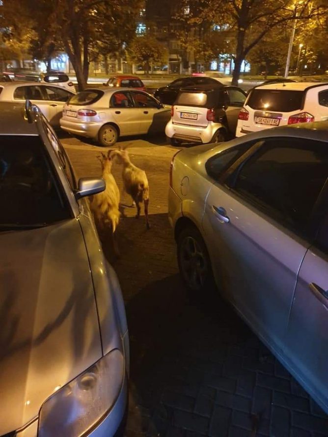Доцна синоќа на социјалните мрежи се појавија фотографии од две кози кои мирно и слободно се шетаат на паркингот кај трговскиот центар „Лептокарија“ во Карпош 3.