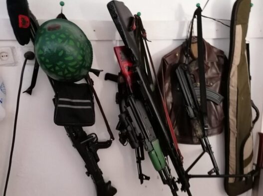 -При претрес на домот и помошните простории на Х.И. (27) и А. И. (52) во с. Србица, пронајдени и одземени се четири автоматски пушки ‘калашников’, две полуавтоматски пушки, две пушки, седум рамки за автоматска пушка со куршуми, 12 пиштолски рамки со куршуми, пушкомитралез со добош за муниција, два митралеза од кои еден митралез марка М 53, а другиот е протиавионски ДСК 12,7 мм со постолје, цевка од тежок митралез, нож бајонет, седум пиштоли, револвер, над 3 500 куршуми 11 рачни бомби со запалка, три рачни бомби без запалка, прибор за чистење оружје, футроли, маскирни ранци, маскирни елеци, двогледи и други предмети, соопштија од МВР.