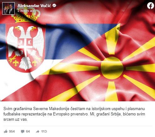 -Целата држава, сите македонски граѓани ја споделуваат радоста за успехот на фудбалската репрезентација. Еден гол за сите, една победа за сите! Така е кога заедно играат Македонци, Албанци, Турци… во исти дресови, под исто знаме и за заедничката татковина. Ова покажува дека само заедно можеме еден за сите, сите за еден, потенцира Заев.