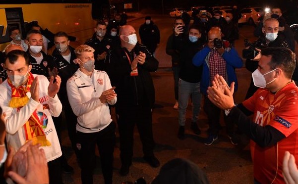 Честитки на фудбалерите на пречекот им упати и премиерот Зоран Заев.