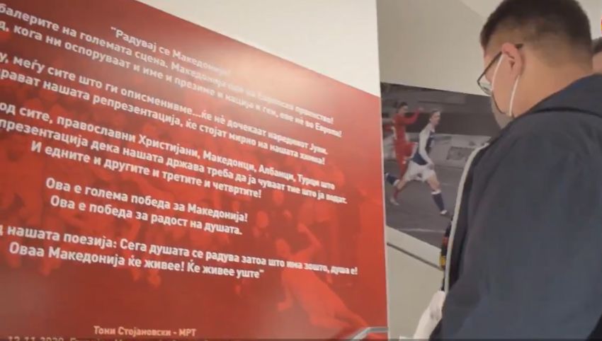 Тој со емотивен говор-коментар го поздрави пласманот на Европското првенство, што беше со одушевување прифатено од публиката. Сега, Стојановски доби неверојатна чест и неговите зборови се испишани на ѕид во просториите на Фудбалската федерација на Македонија. Првиот човек на ФФМ, Мухамед Сејдини го пречека новинарот од Македонската телевизија и му ја покажа плакетата со неговите зборови која ќе ги краси ѕидовите на федерацијата.