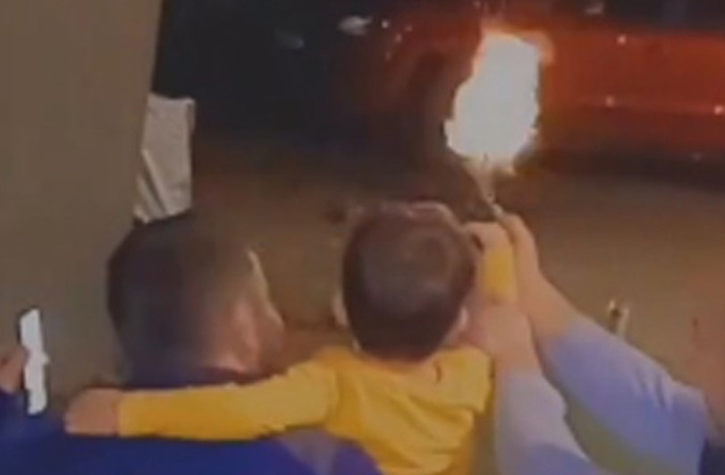 Поставено е ново видео на социјалните мрежи што ја возбиди јавноста. Овој пат не е некој со „Бентли“ кој вози по плоштадот, туку во прашање е видео во кое се гледа како двајца мажи му помагаат на мало детенце да пука со вистински пиштол.