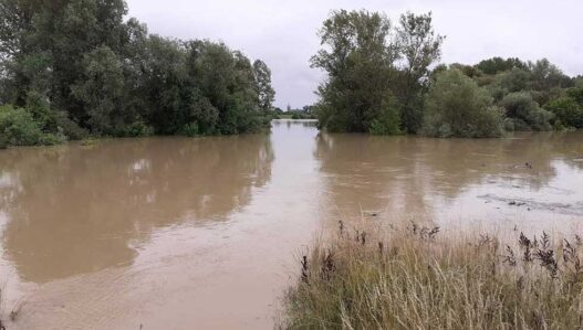 Во општина Кичево како последица од врнежите од дожд има излевање на река Треска во нивите покрај течението на реката и заезерување.