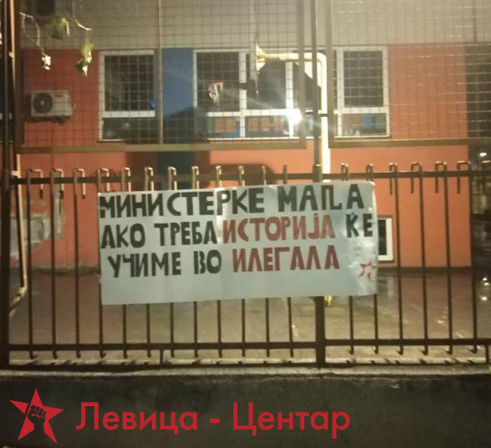 „Министерке мала ако треба историја ќе учиме и во илегала“, „Без историја нема иднина“, „Човек без историја, дрво без корен“, „Во историја нема пари“, „Министерке кому му ја продавате историјата“,,„Не земајте им ја на децата историјата – учителка на животот“, „Ние не сме дрво без корен, Не за окупаторска реформа“… се натписи на плакати кои на повеќе училишта ги поставија припадниците на партијата Левица.