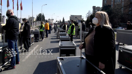 Под мотото „ПОМЕН – една година тишина“, со транспаренти во рацете „Спасете ја ивент-индустријата“, вработените во продукциските компании за организирање настани се собраа пред Владата со поставени кутии за опрема и со едночасовен молк го изразија својот револт, бидејќи една година не работат.
