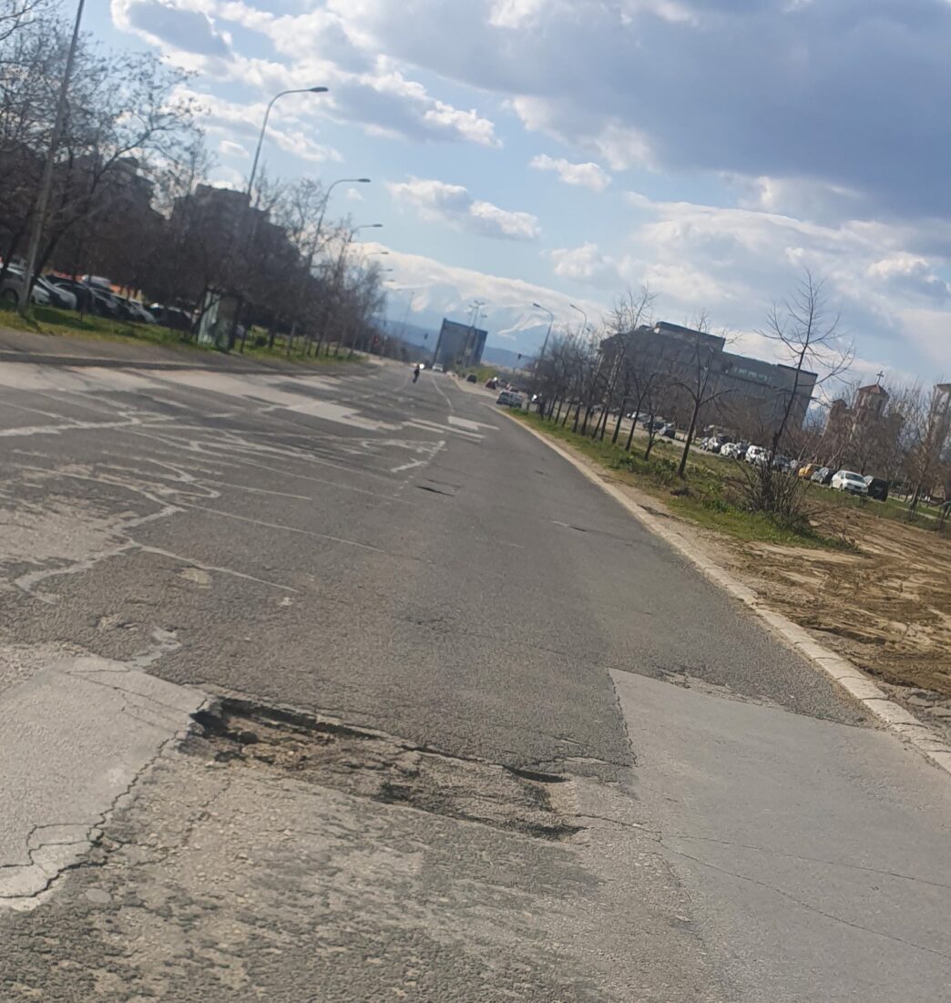 Ако се тргне кон големиот парк популарно наречен „Авионче“ ќе налетате на многу дупки. Едноставно, по булеварот АСНОМ во делот спроти паркот, подружницата на ЕВН и седиштето на ФФМ во Ново Лисиче „кратерите“ во асфалтот се бајаги големи. Неколку дури и широки по половина метар, а длабоки десетина сантиметри.