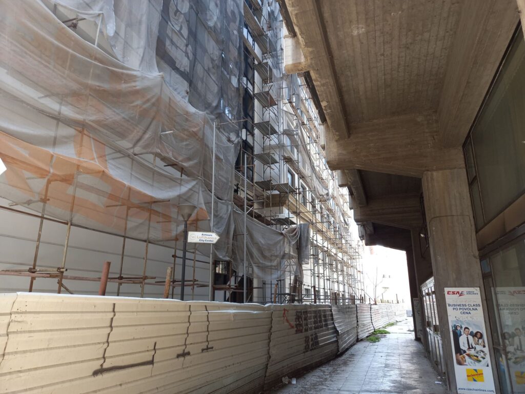 Ако скршнете десно покрај хотелот „Турист“ (сега „Бест Вестерн“) за да се пробиете мора да поминете низ една тесна патека – од едната страна е зградата, а од другата тараба на градилиштетот кое, исто така постои, со години. Зад тарабата е огромно здание залепено за штабот на ВМРО-ДПМНЕ и на кусо растојание од Технометал.