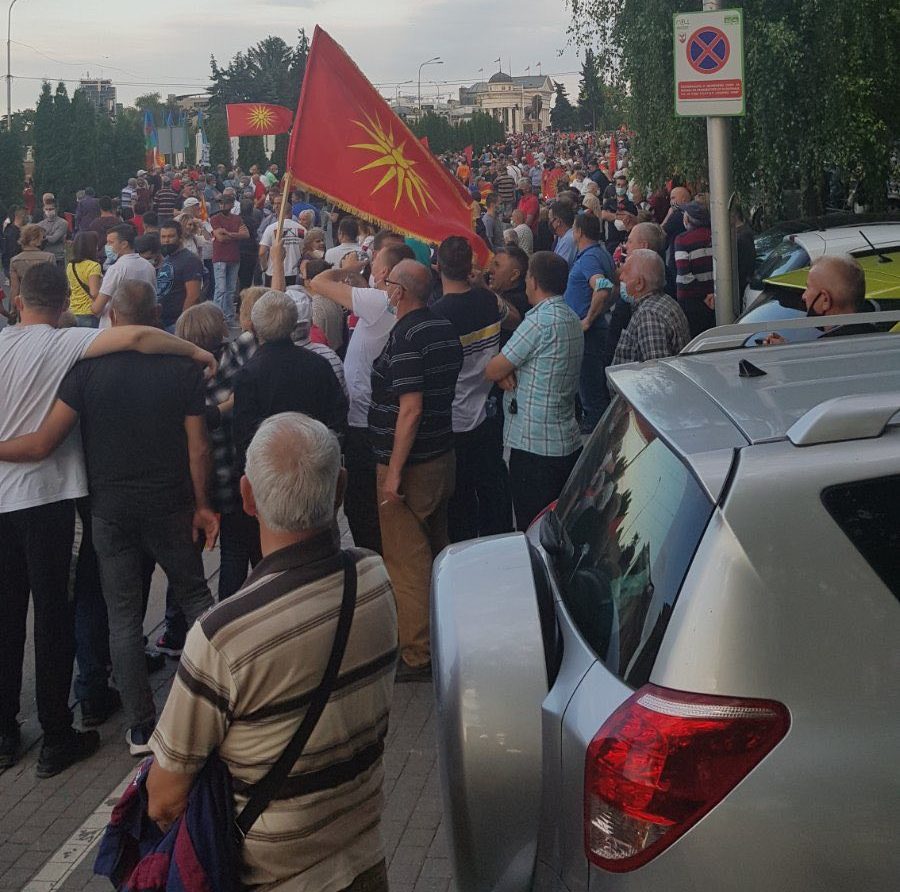 Протестот пред Владата и пред Собранието беше одржан под слоганот „Демократија во Македонија и слобода за уставобранителите”.