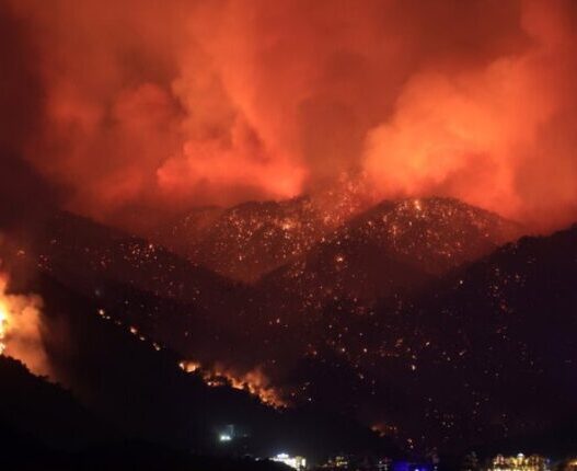 Пожарот избувна во шума недалеку од Анталија. Поради близината на туристичките места, во хотелите нема струја и вода.