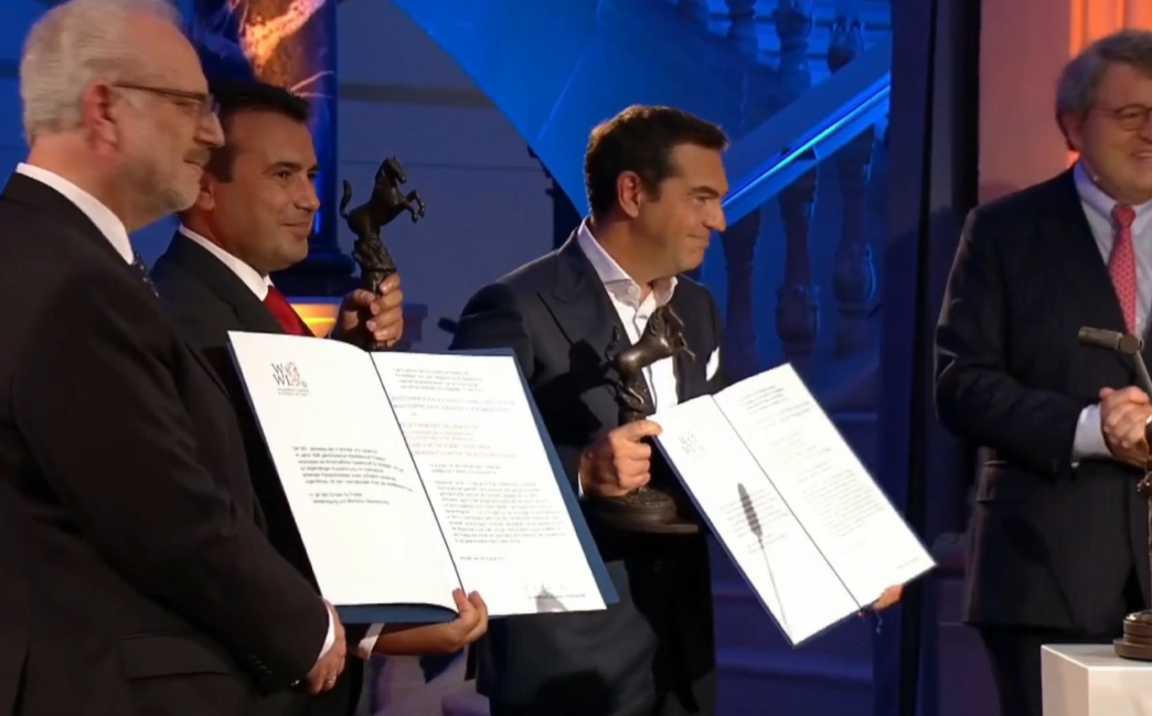 „Со Алексис рековме дека нема да дозволиме процесот да заврши без решение. Не сакавме да го одолговлекуваме процесот. Свесни бевме дека ги изложивме нашите политички кариери на ризик, но поважна ни беше иднината и затоа најдовме решение“, додаде Заев по добивањето на наградата.