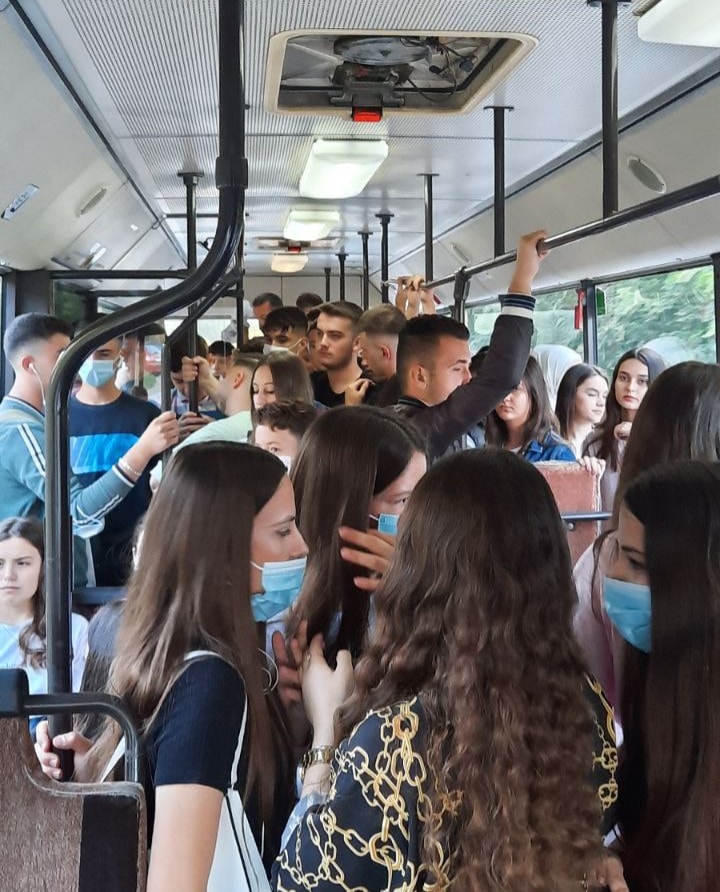 На првиот училишен ден социјалните мрежи ги преплавија фотографии од автобуси на ЈСП во кои без растојание и во огромен број се транспортираат патници, најмногу ученици. Во време на експлозија на новиот бран на ковид-вирусот, граѓаните бараа од јавното претпријатие да обезбеди повеќе автобуси кои почесто од вообичаениот возен ред ќе транзитираат низ градот. Но тоа барем вчера не се случи, напротив автобусите возеа по неделен наместо по делнички возен ред.